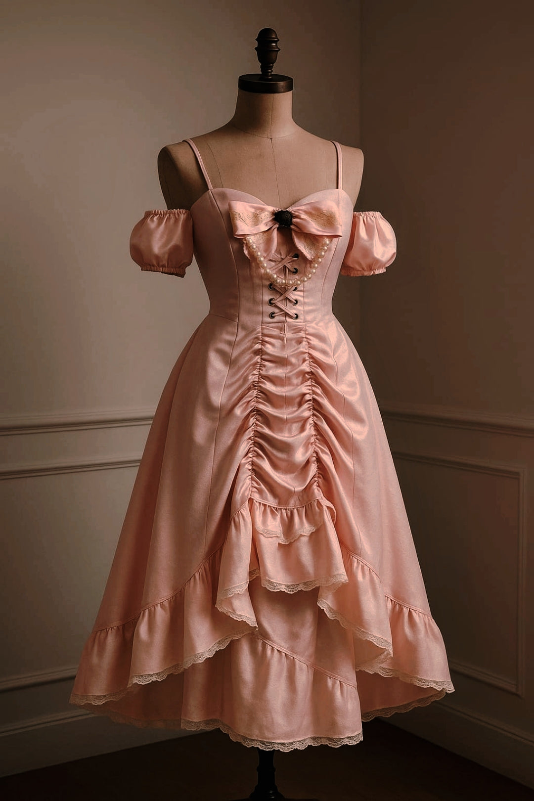 Gül pembesi satenin zarif dokusu, ışıltılı inci detaylarıyla buluşarak Flor de Perla’yı zamanın ötesine taşıyor. Göğüs kısmındaki romantik fiyonk, dantel kenarlar ve yumuşak büzgüler, elbiseye hem masalsı hem de asil bir hava katıyor. İnci Çiçeği, adını yansıtır şekilde, nadir bulunan ve sadece özel anlar için tasarlanan bir parçadır.