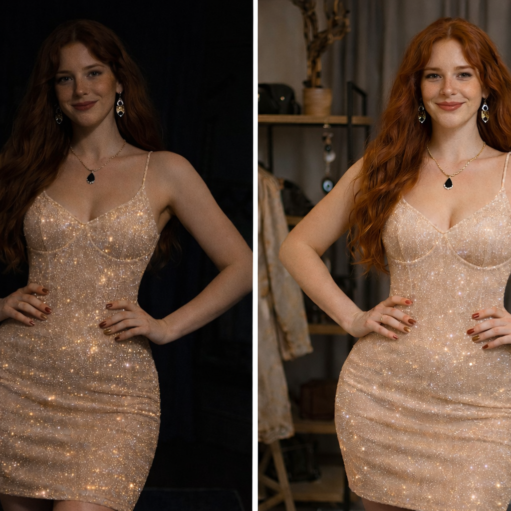 Vücuda oturan kalıbı, ince askıları ve dengeli ışıltısı sayesinde hem gece davetlerinde hem de özel organizasyonlarda etkileyici bir görünüm yaratır.