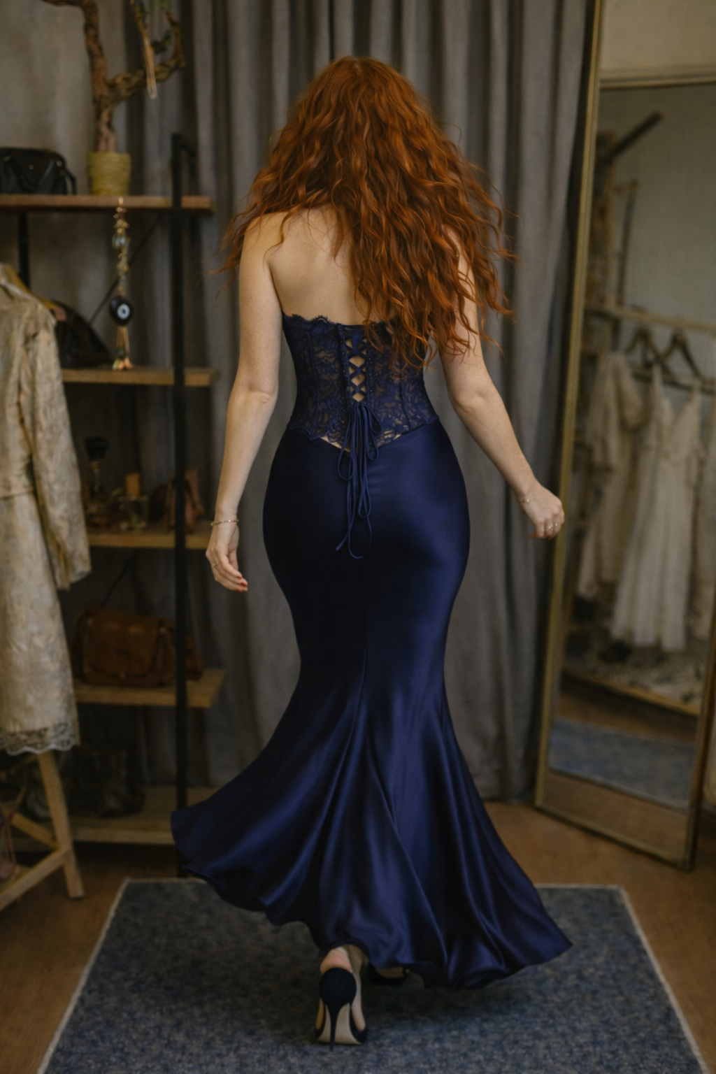Midnight Lace Corset, lacivert dantelin zarif dokusunu vücuda oturan couture formuyla buluşturur.